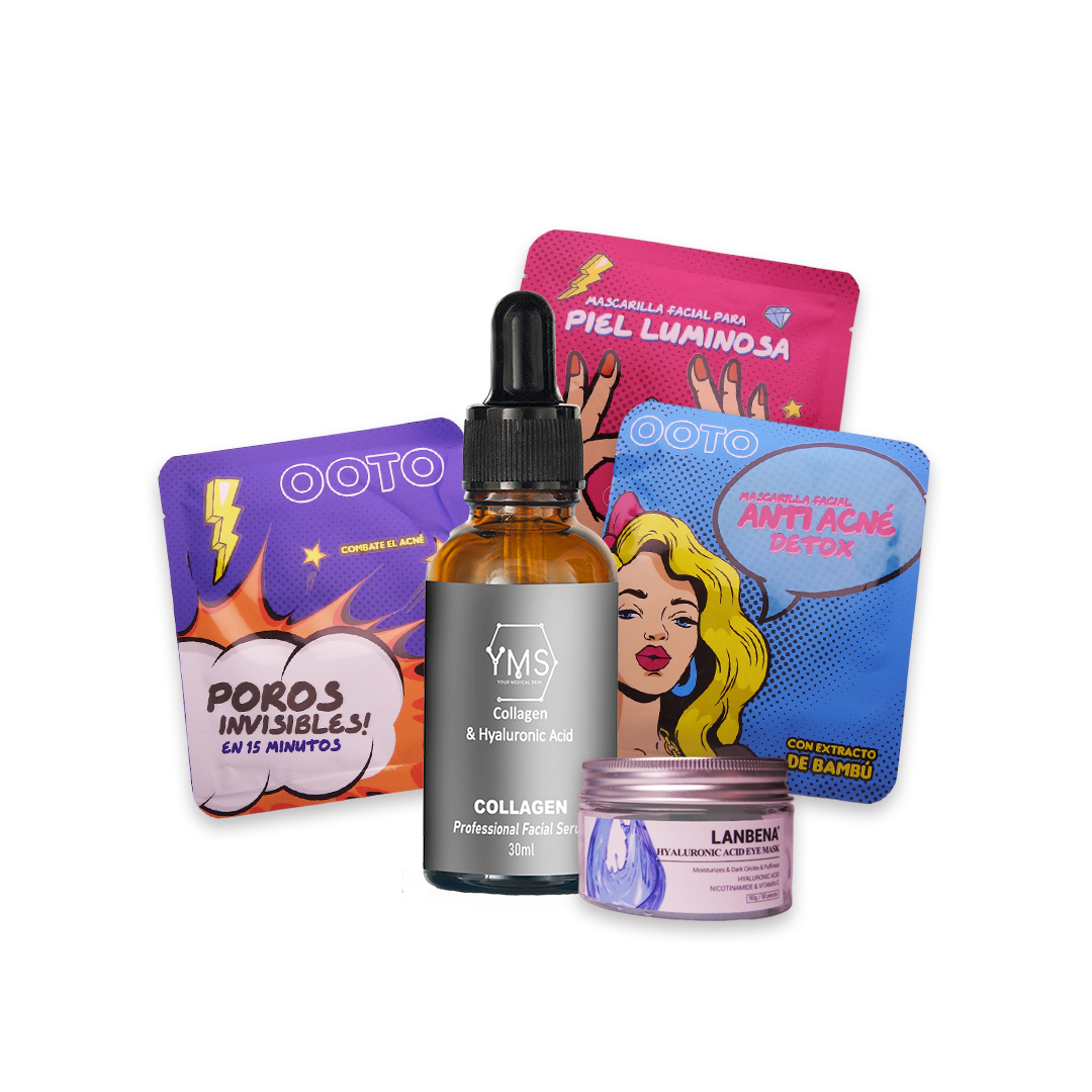 Pestañas postizas + parche de ojeras + 1 serum facial + 4 mascarillas